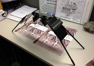 This week at work, just for fun, I set up a stereoscope and slid some stereo photos underneath the mirrors. These photos are high resolution, large scale shots taken back in April when we had a new orthorectified aerial image of the airport developed.  I asked the contractor to send me a stereo pair from the project that I could play around with.  It’s been years since I spent any time peering though the optics of a stereoscope and it was fun to look over the images and realize just how much a stereo view adds to one’s ability to pick out details.