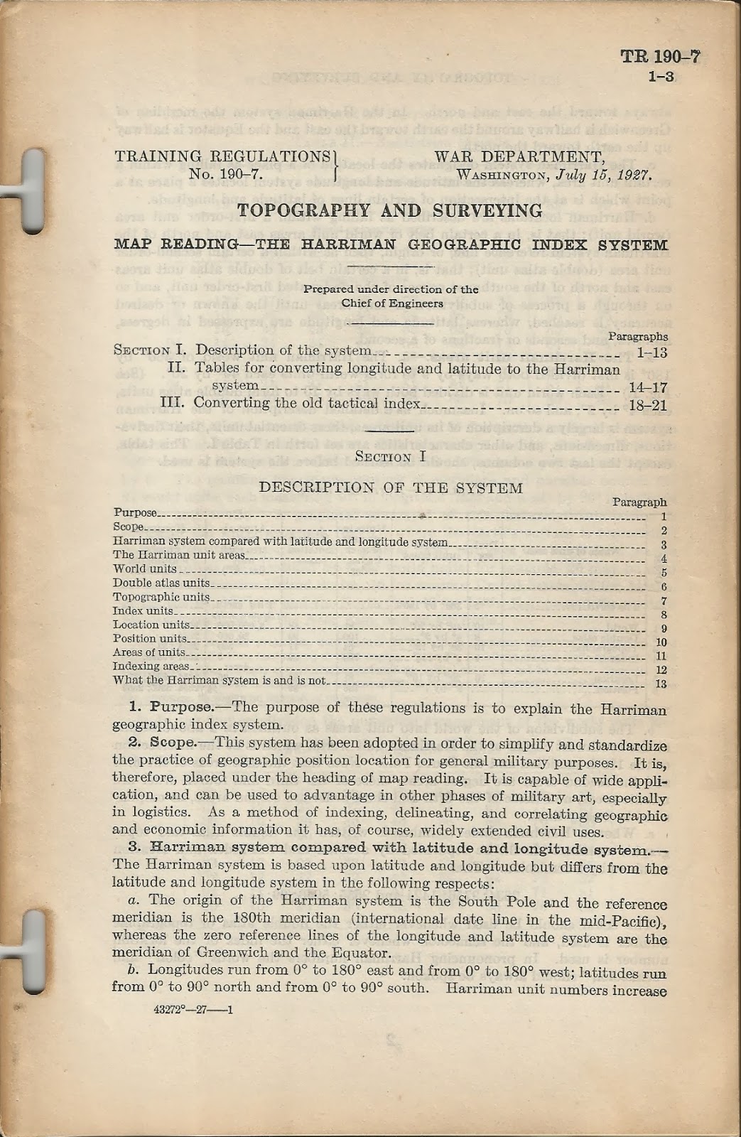 • Training Regulation 190-7, Topography and Surveying, Map Reading – The Harriman Geographic Index System (July 15, 1927)