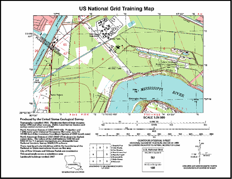 The great news is that if you remember your old Army map reading instructions, the US National Grid System works exactly like the Military Grid Reference System – heck, it is the Military Grid Reference System*, just implemented at a different scale (1:24,000 vs. 1:50,000). All the old rules are the same – remember to include the Grid Zone Designation and the 100,000 meter Square ID. And don’t forget to read right and up!