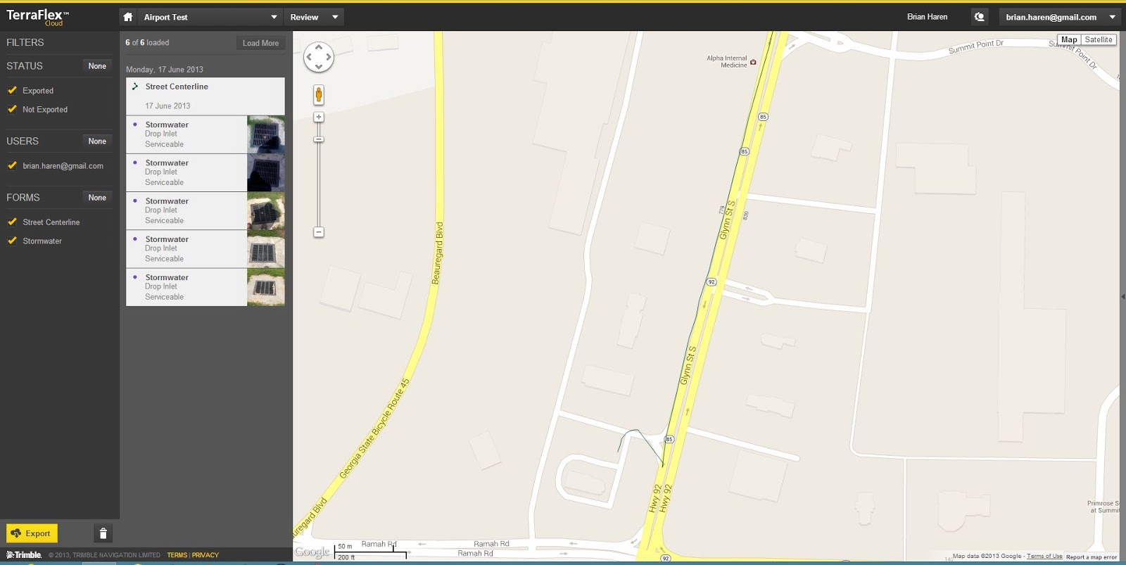 Once your data is synced with the TerraFlex cloud you can go back in to the desktop web interface and view the data, do basic edits and export it for use in other packages like ArcGIS or AutoCAD.