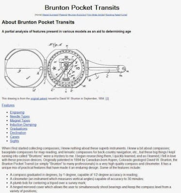 Update!  Just today I was doing a Google search on a topic related to Brunton pocket transits and I ran across an interesting booklet titled “Enterprise & Innovation In The Pikes Peak Region” published in 2011 by the Pikes Peak Library District.  In the booklet is a very informative article about David W. Brunton, the inventor of the Brunton Pocket Transit.  There’s a very good discussion about the development of the pocket transit.