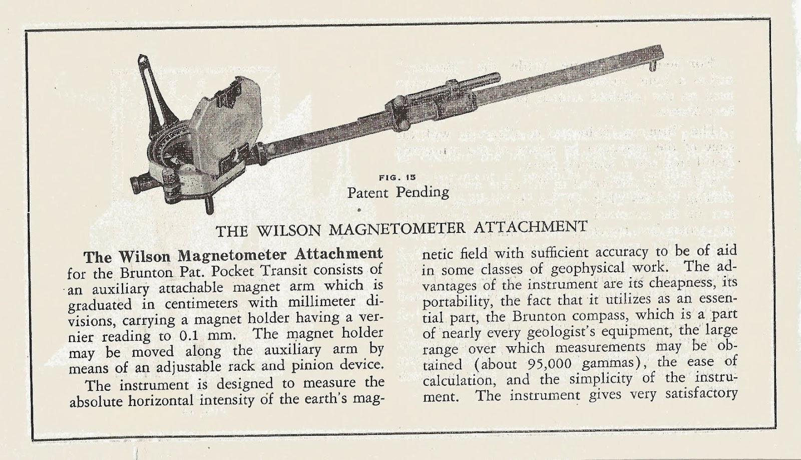 There’s even instruction on how to use the pocket transit in conjunction with the ‘Wilson Magnetometer Attachment’, a real Rube Goldberg device that is intended to be mounted to a plane table to measure large anomalies in magnetic intensity found in mineral bearing rock formations.  I’ve never seen a Wilson Magnetometer in person, but I’m keeping my eye out for one!