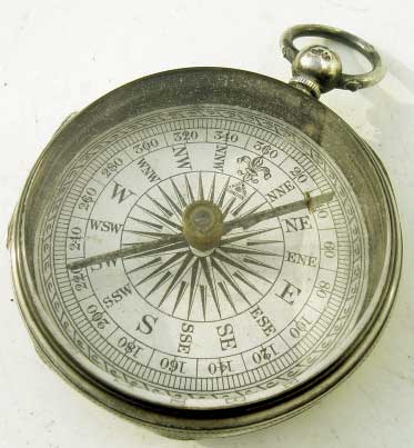 The compass is such a simple tool that everything that came after was merely a refinement on the initial design. Basic refinements came quickly – improvements in indicating direction (development of the compass ‘card’), improvements in mounting and suspeding the needle, improvements in housing the device aboard ship. The basic compass design was quickly brought ashore and miniaturized, and small and easy to carry compasses began to appear. For centuries, however, the compass remained a simple device – a needle placed against an indicator that showed the cardinal directions (North, South, East, West, Northeast, Southwest, North Northeast, etc.). This design seems to have prevailed right up into the 19th Century.