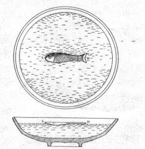 A magnetized chunk of iron (shaped like a fish) suspended in a bowl of water.