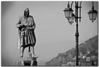 Eventually someone, most likely a seafarer, figured out that if this magnetized needle always pointed north, regardless of the weather, then it could be useful for indicating direction while at sea. This sharp sailor probably lived along the west coast of Italy in the 13th Century in one of the bustling centers of seagoing commerce scattered up and down the coast, from Genoa in the north to Salerno in the south. Italian legend attributes the development of the navigational compass to a guy named Flavio Gioia, who lived in a town just outside of Salerno in the early 14th Century. Scholarship casts serious doubt on this claim, but since nobody has come up with a better story the Italians are sticking with it. Plus, it’s good for the tourist trade.
