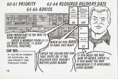 This is where those in the know could have some fun. See that Priority box? If you wrote ‘3’ in there you’d get your maps pretty quick, but if you put a ‘1’ in there you’d start alarm bells ringing all around the Washington D.C.beltway as flag officers tried to figure out just why the 443rd Mess Kit Repair Battalion at FT Bragg needs 500 copies of every map of Western Europe by noon tomorrow. What do they know that Washington doesn’t? Maybe the 443rd is just a cover unit for Delta Force? Yeah, that has to be it!