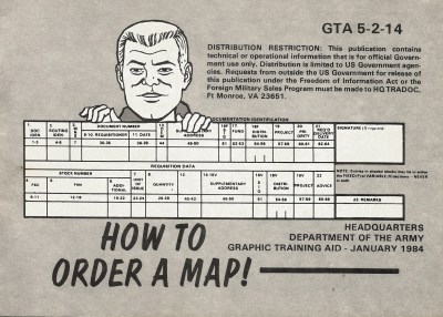 Need a map? The Army Engineers came up with this nifty graphic training aid to guide you through the arcane process of ordering maps.